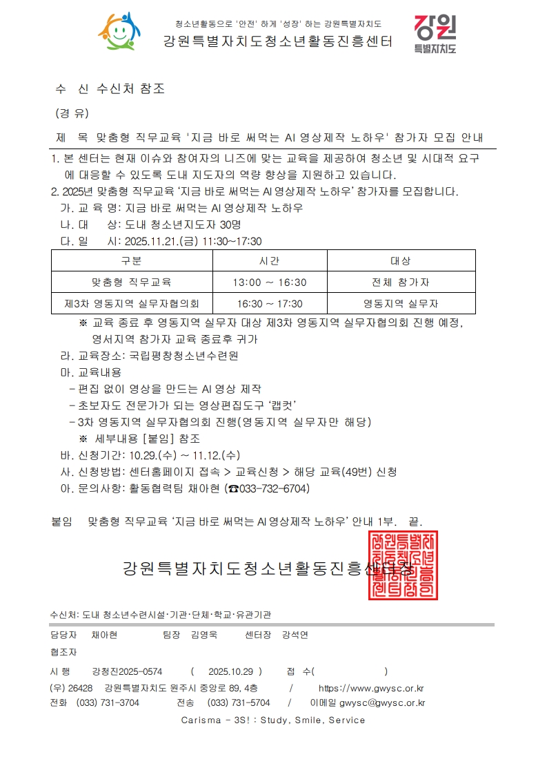 수료증맞춤형 직무교육 '지금 바로 써먹는 AI 영상제작 노하우' |