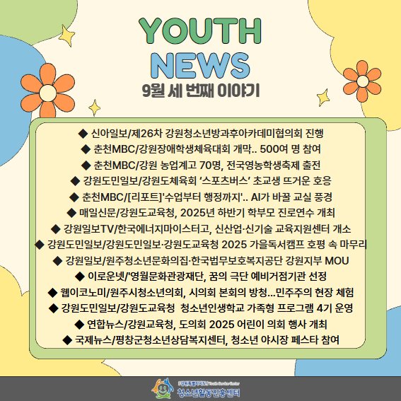 | 제목 | [YOUTHNEWS]유스뉴스 9월 세번째 소식 | ||||