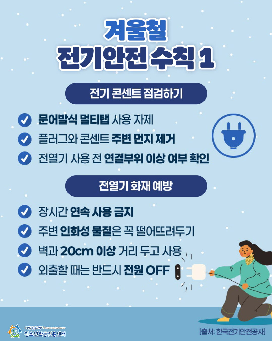 따뜻한 방 안에서 전기·가스 사고가 나지 않도록