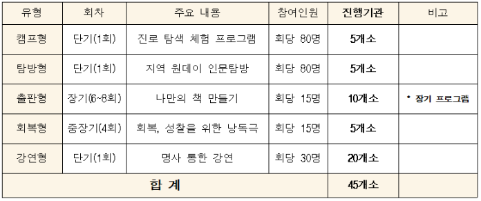 ○ 지원내용 : 겨울방학 기간 맞춤형 인문문화프로그램 제공