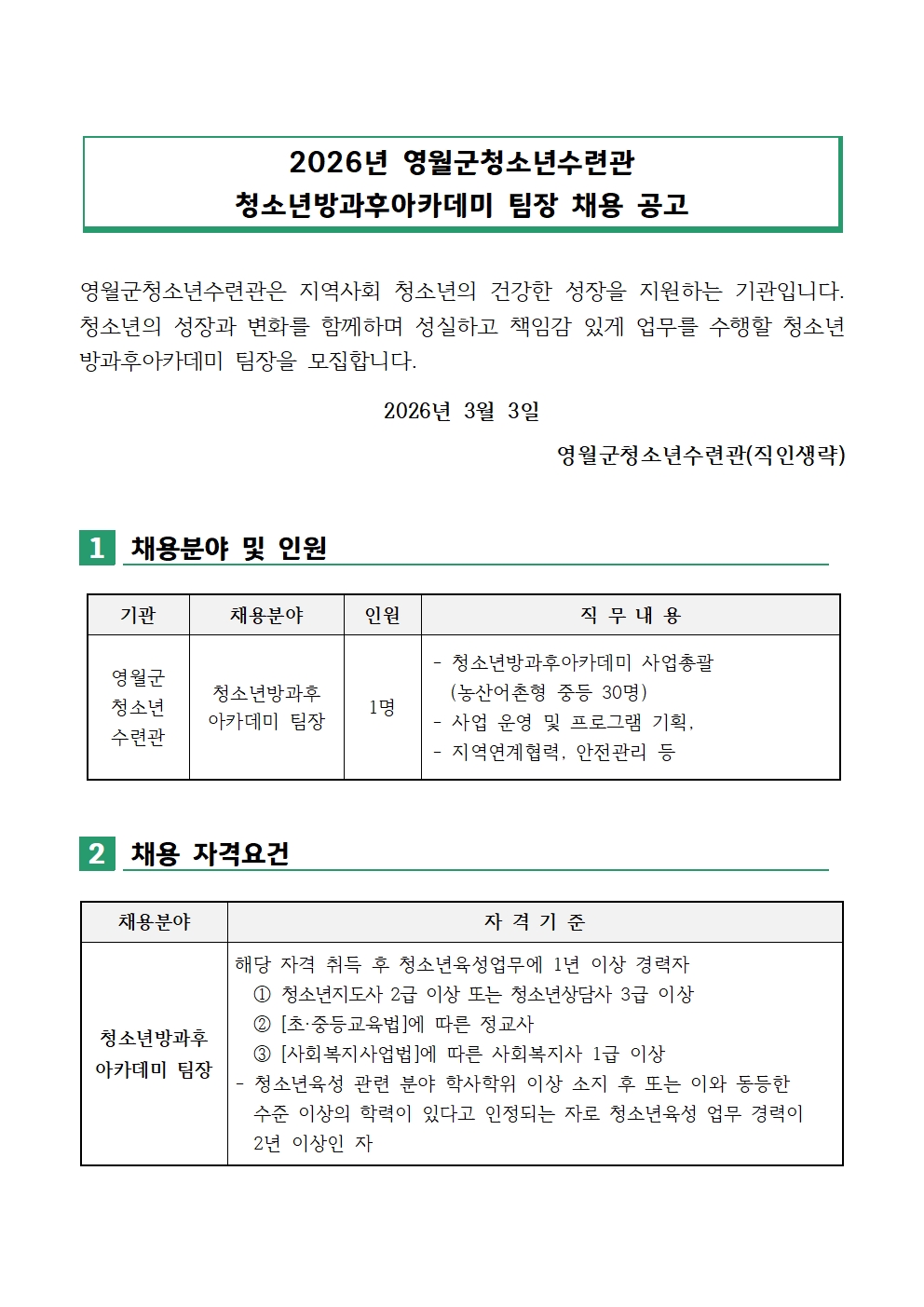 2026년 영월군청소년수련관 방과후아카데미 팀장 채용 공고003.jpg