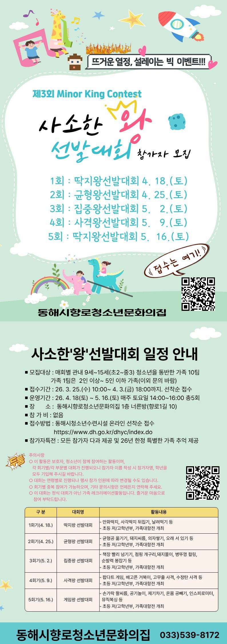 | 제목 | [모집홍보][동해시향로청소년문화의집] 제3회 사소한 왕 선발대회 참가자 모집 | ||||