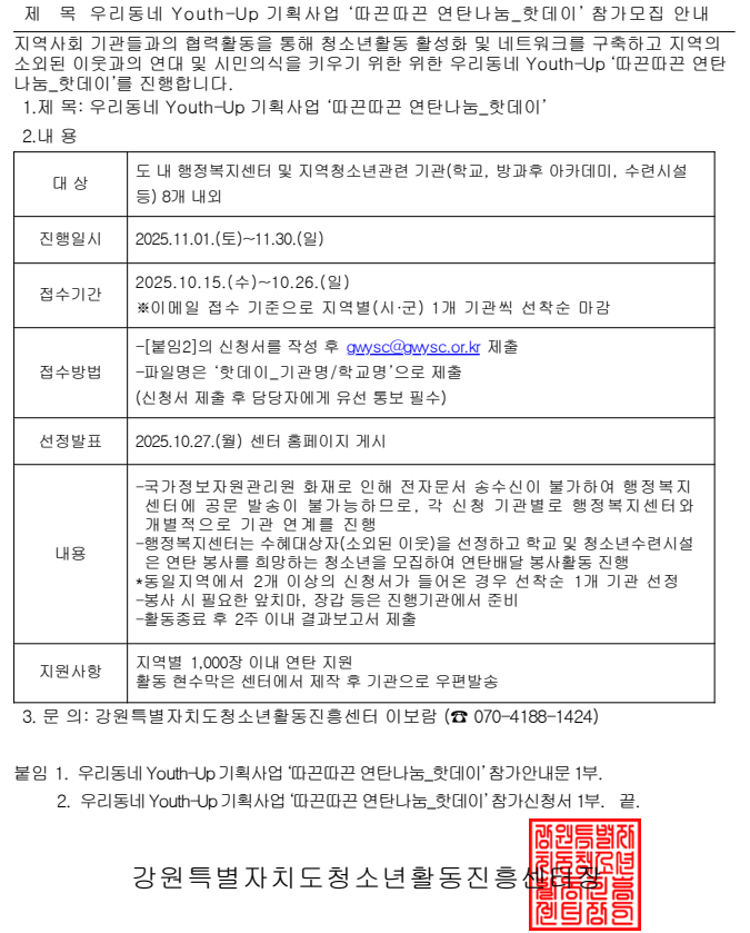강원특별자치도 - 청소년활동진흥센터