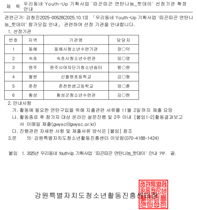 2025년 우리동네 Youth Up 기획사업 따끈따끈 연탄나눔 핫데이 안내.hwp