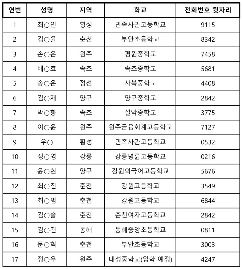 2026 강원특별자치도 청소년참여위원회 최종합격자를 다음과 같이 발표하오니, 해당 청소년은 아래 안내사항 참고하여 발대식 참석 바랍니다.