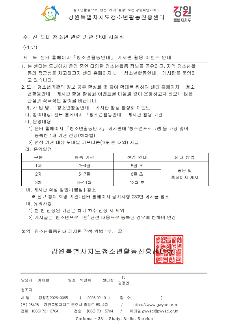 [공문] 센터 홈페이지 「청소년활동안내」 게시판 활용 이벤트 안내_1.jpg