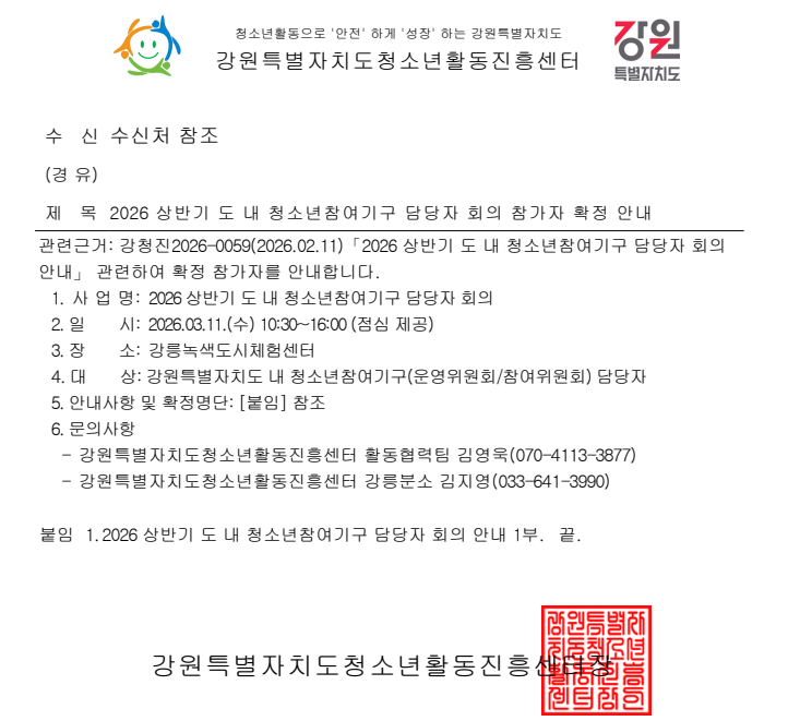 2026 상반기 도 내 청소년참여기구 담당자 회의 참가자 확정 안내.pdf
