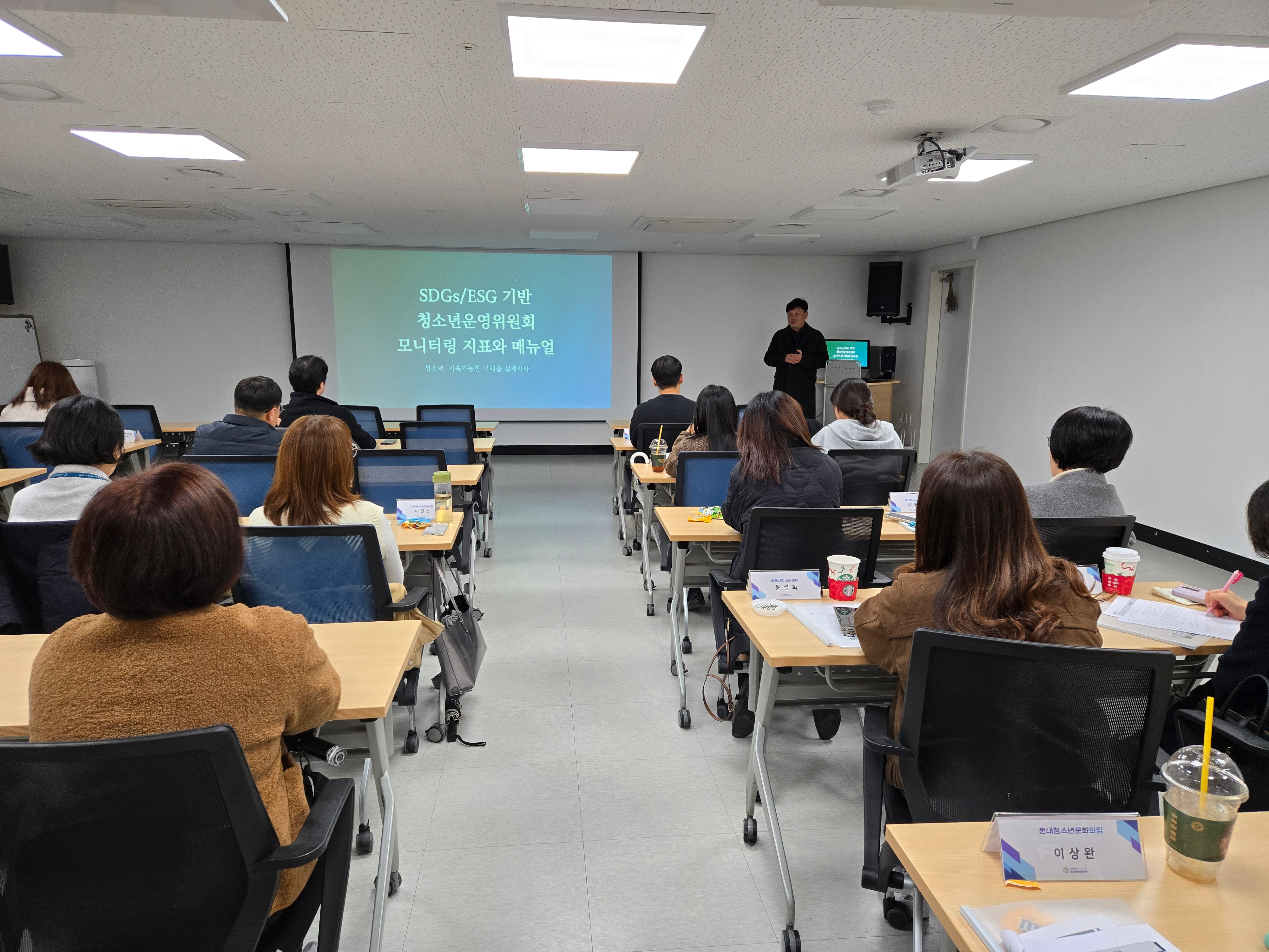 2025년 센터 참여기구 지원 사업 결과 안내, 청소년참여·운영위원회 담당자 회의, ESG 지표 가이드 안내 등의 프로그램이 진행되었습니다.